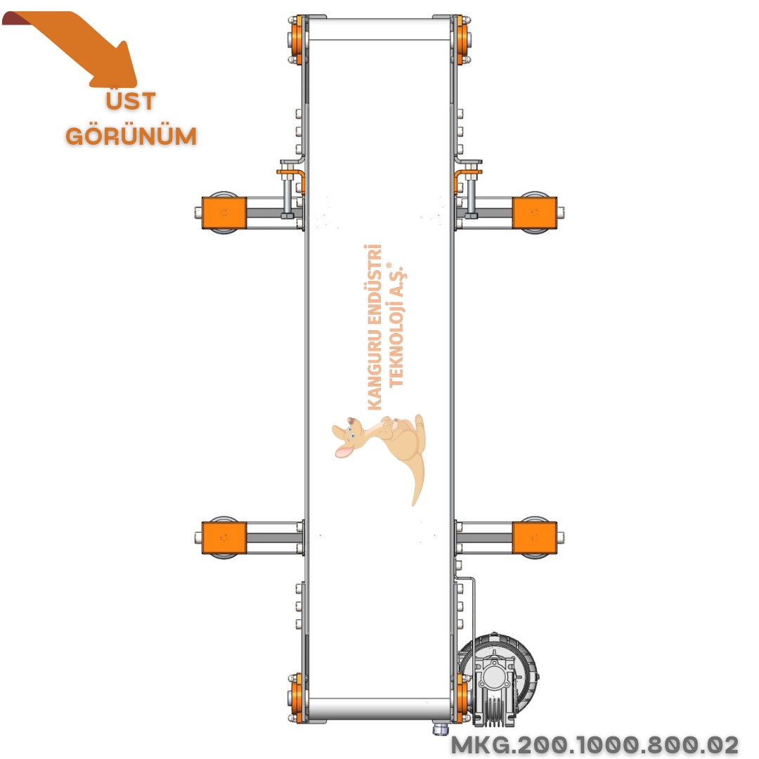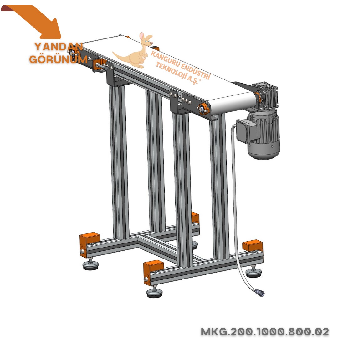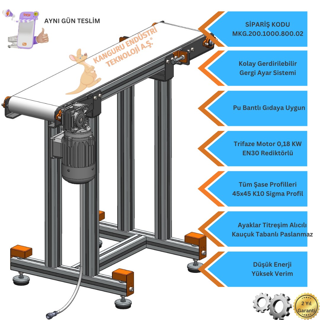 Kompakt ve Verimli Tasarım: 200 mm genişliğinde, 1000 mm uzunluğunda ve 800 mm yüksekliğinde olan bu minyatür konveyör, küçük alanlarda dahi rahatlıkla kullanılabilir. Bu özellik, özellikle dar alanlarda yüksek verimli taşıma çözümü arayan işletmeler için idealdir.
