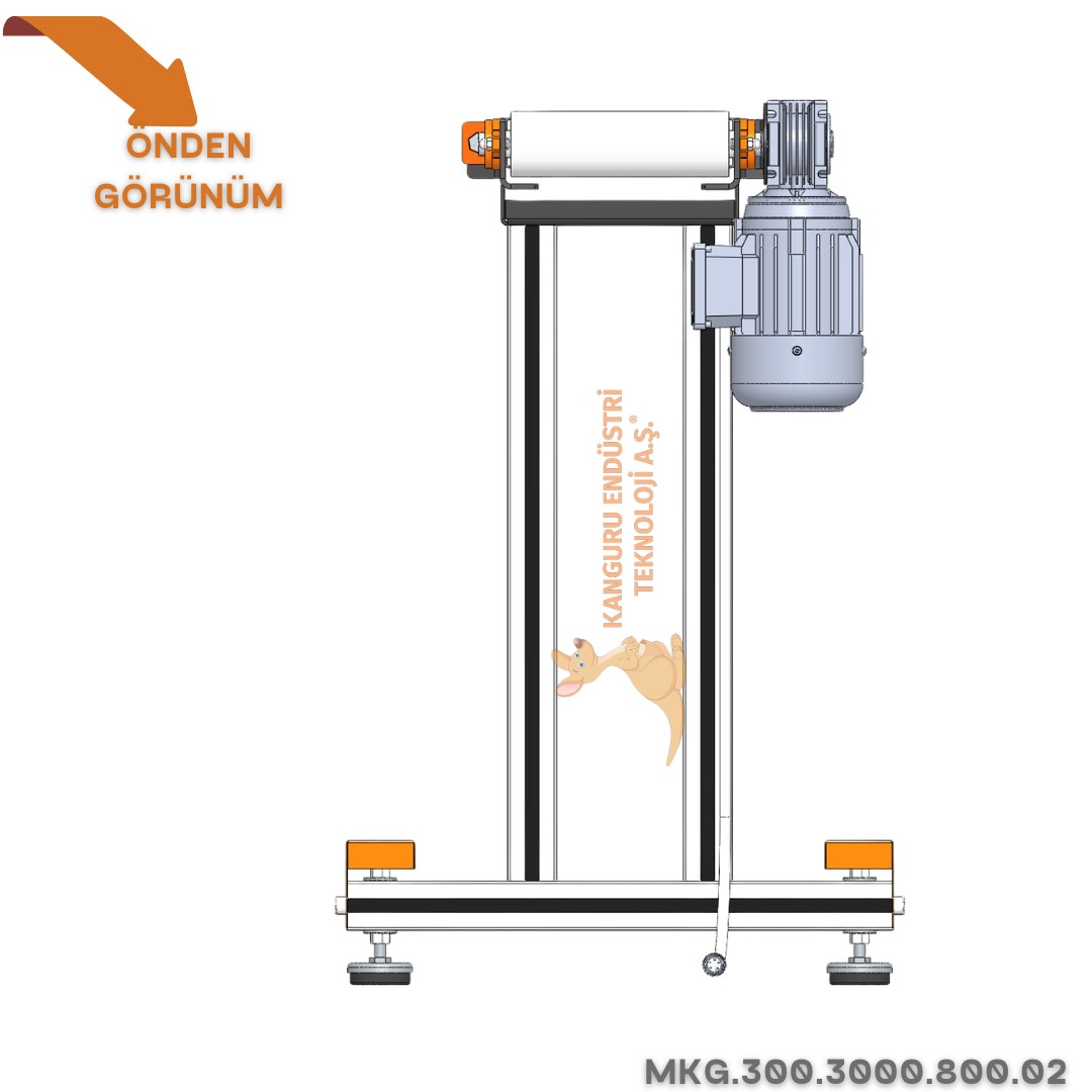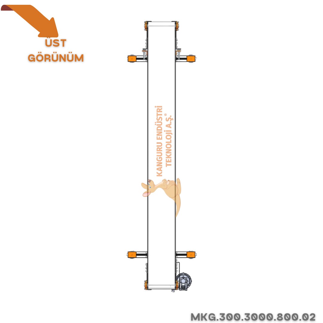 Boyutlar: 300 mm genişlik, 3000 mm uzunluk, 800 mm yükseklik