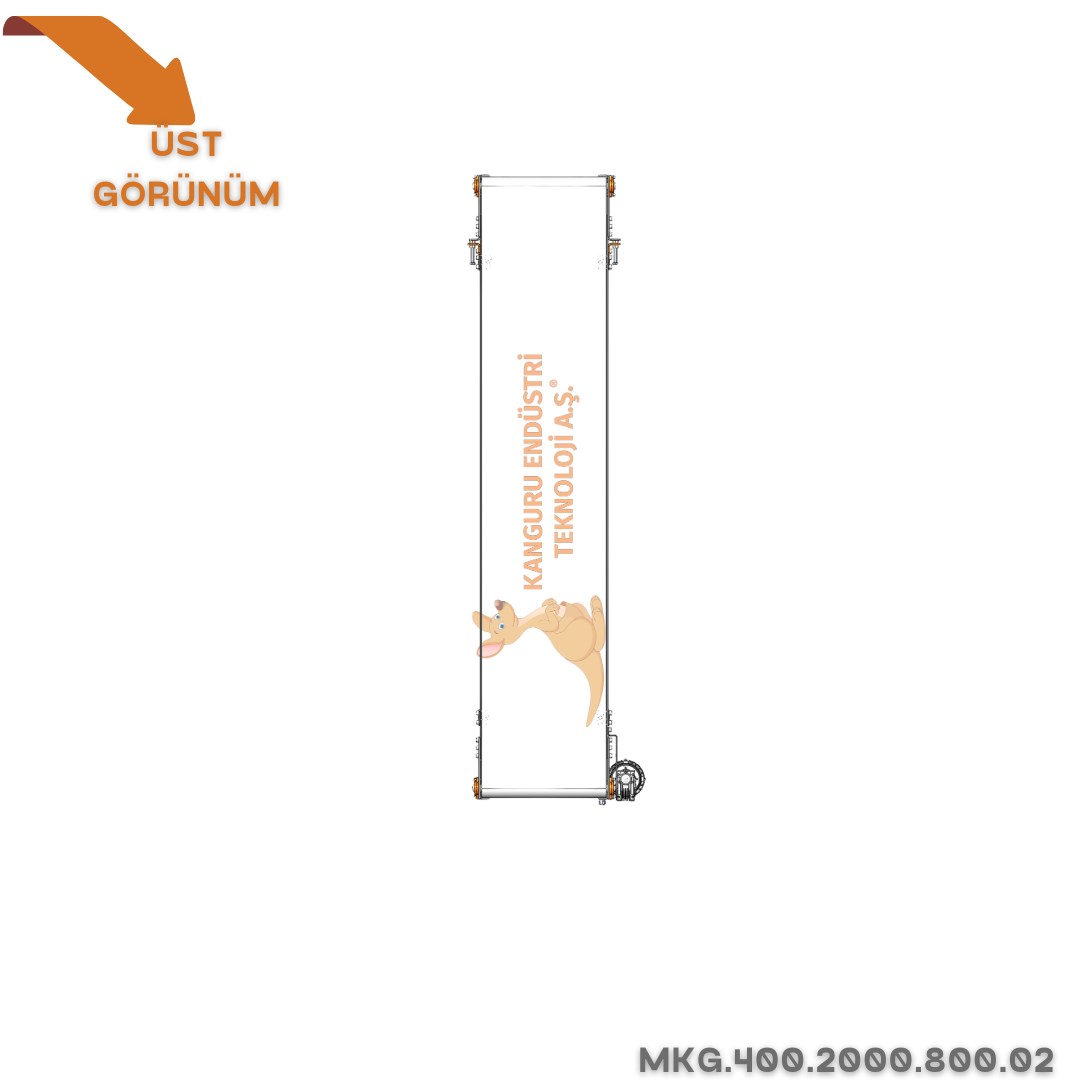 Ebatlar: 400 mm genişlik, 2000 mm uzunluk, 800 mm yükseklik.