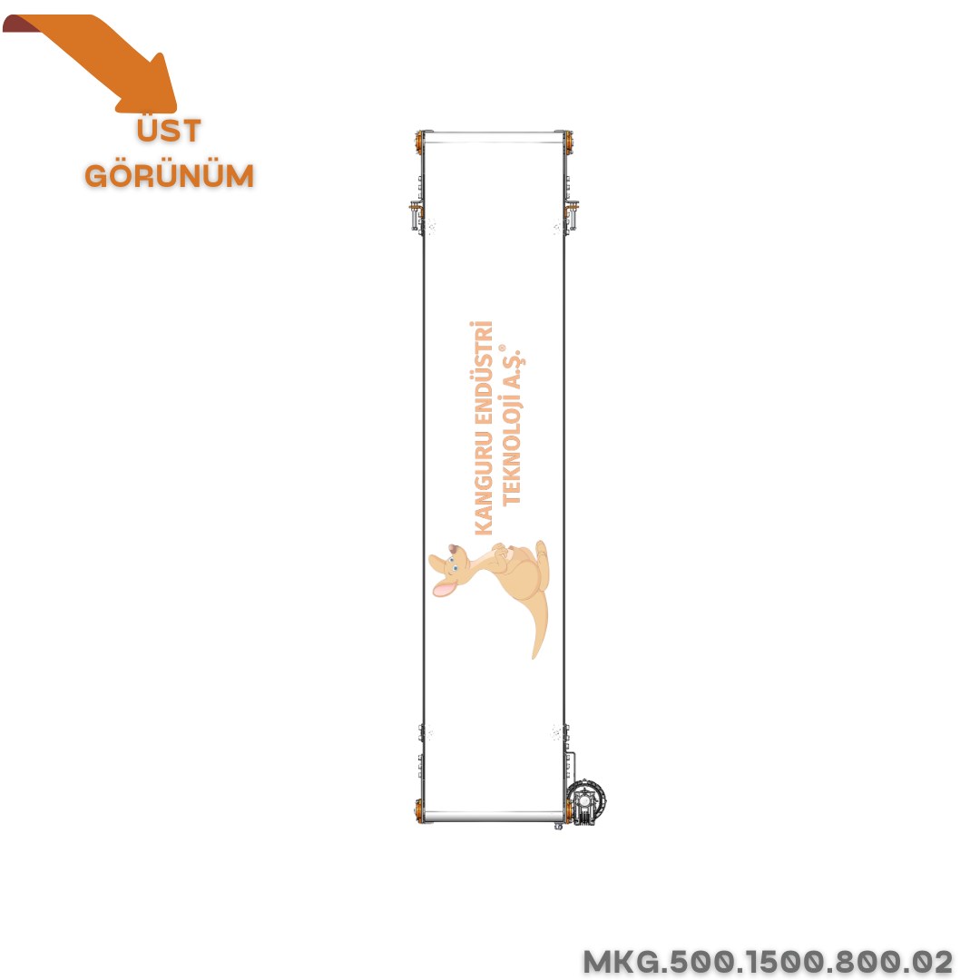 Ebatlar: 500 mm genişlik, 1500 mm uzunluk, 800 mm yükseklik.