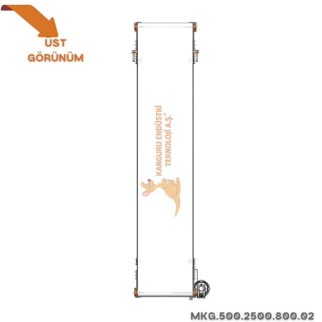 Ebatlar: 500 mm genişlik, 2500 mm uzunluk, 800 mm yükseklik.