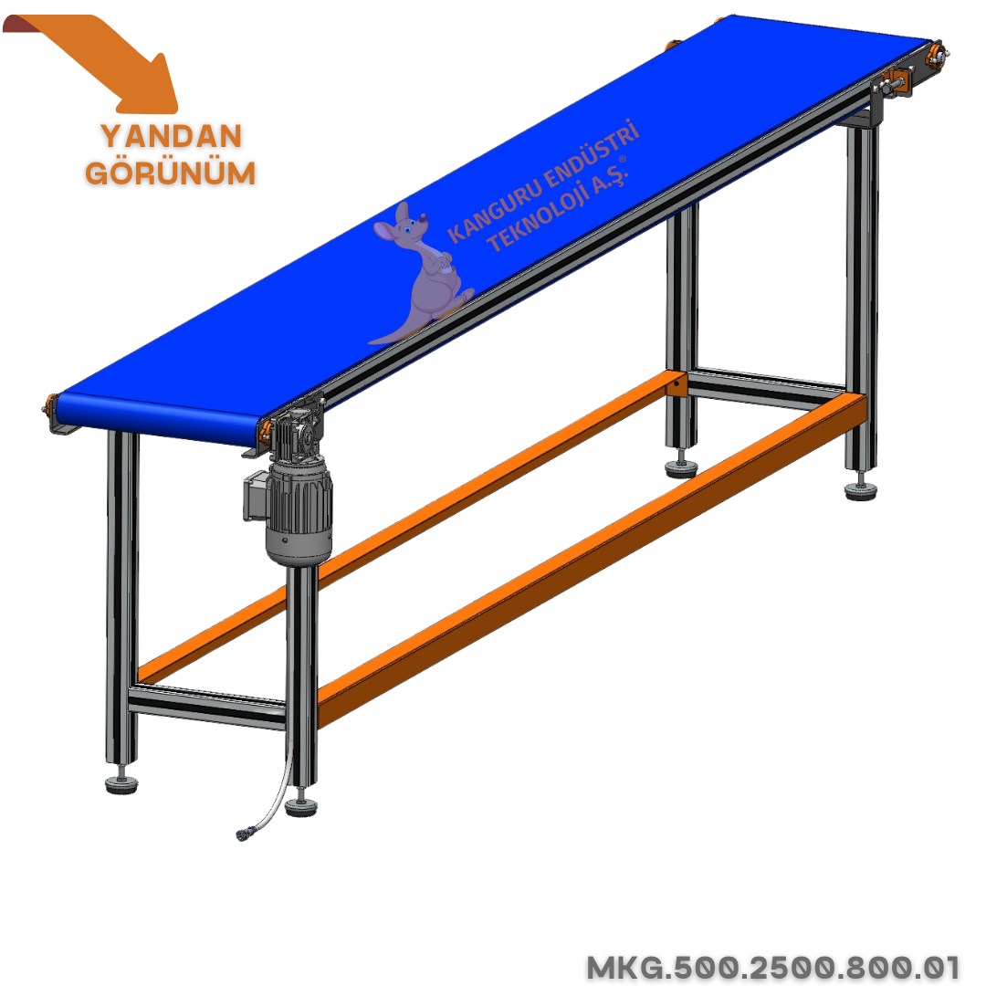 Ebatlar: 500 mm genişlik, 2500 mm uzunluk, 800 mm yükseklik.